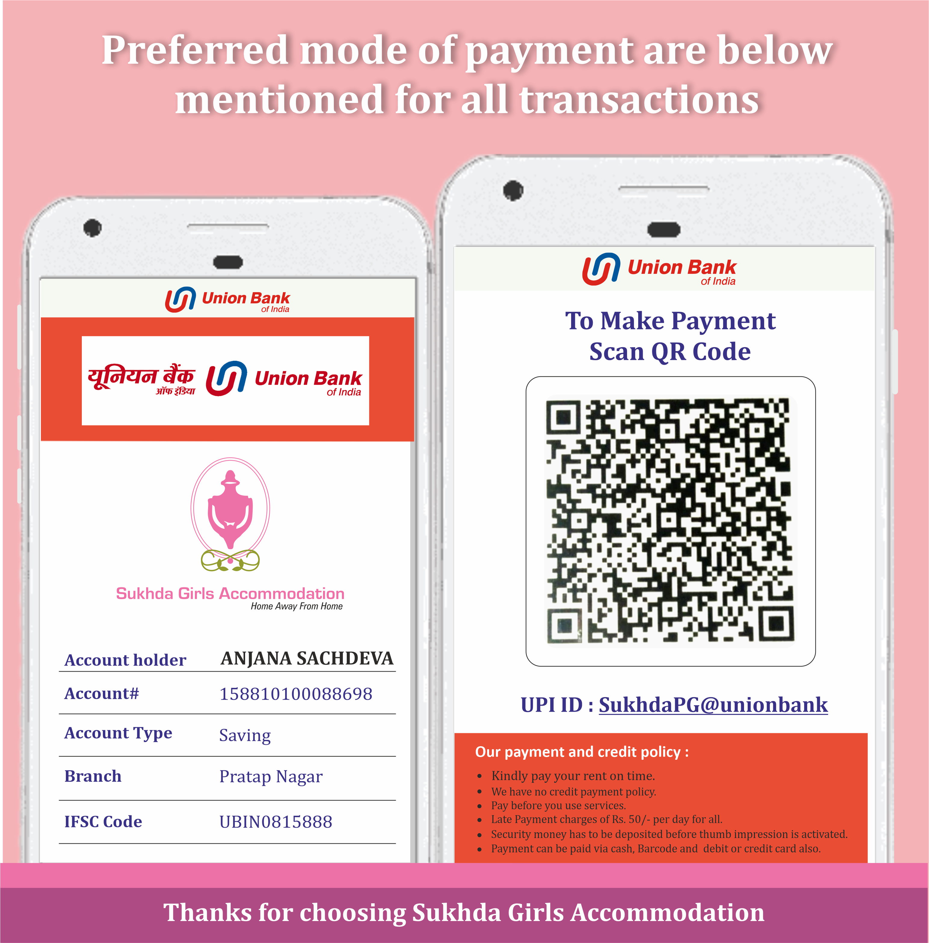 Rent can be paid via bank transfer, UPI, or in cash. Please ensure timely payment by the [due date] of each month. Rs 50/day late fee charge applicable.